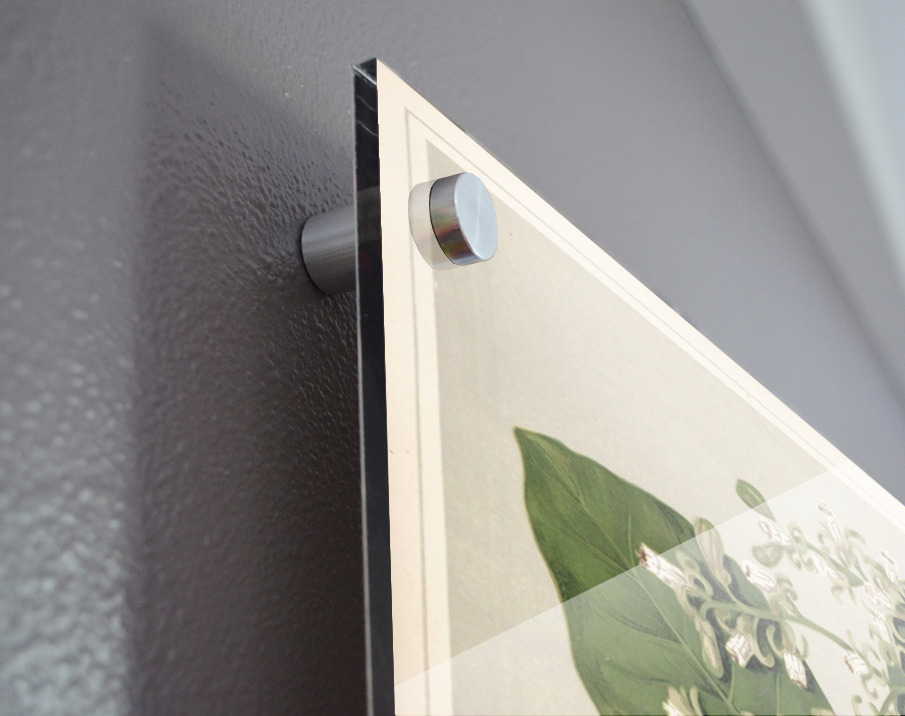 Printed to the edge - Ready to hang - provided with 4 premium polished aluminum stand off ( wall screws and mounting hardware provided ) We suggest a thicker 3/16" acrylic for any size over 42 inches to guarantee a straight acrylic, without curvature