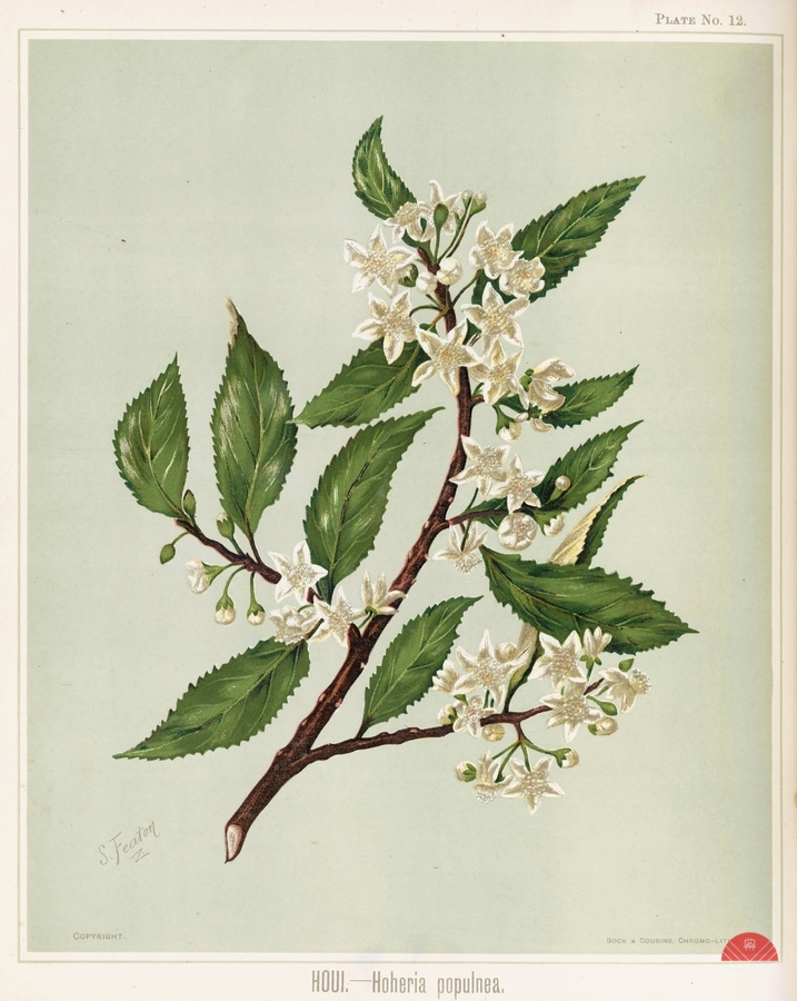 Houi. – Hoheria populnea. Plate 12 Sarah Featon New Zealander 1848 – 1927