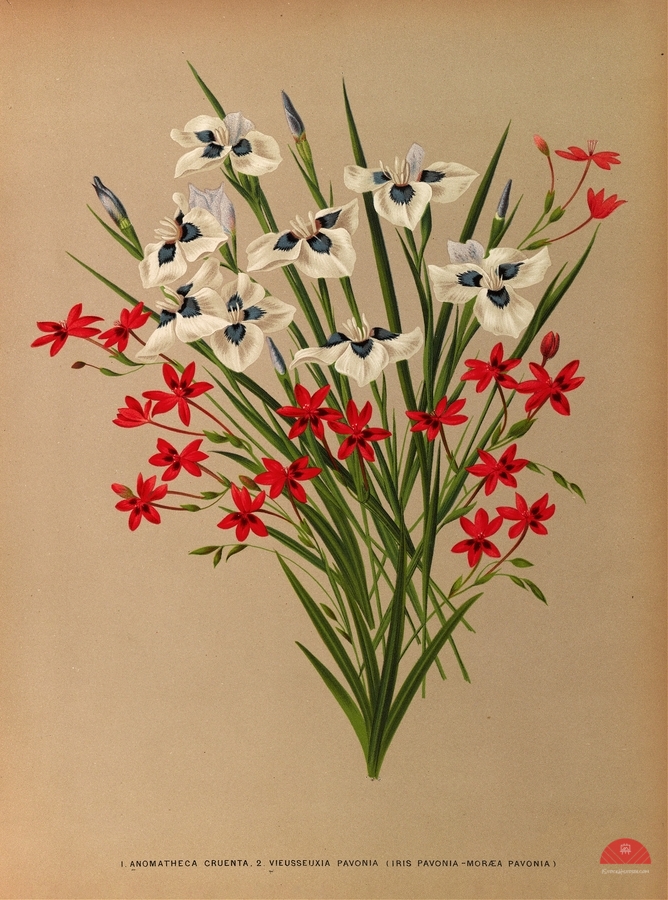 Anomatheca Cruenta . 2 Vieusseuxia Pavonia Iris Pavonia -Morea Pavonia 1872-1881 Arentina Hendrica Arendsen Dutch 1836 - 1915