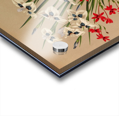 Printed to the edge - Ready to hang - provided with 4 premium polished aluminum stand off ( wall screws and mounting hardware provided )