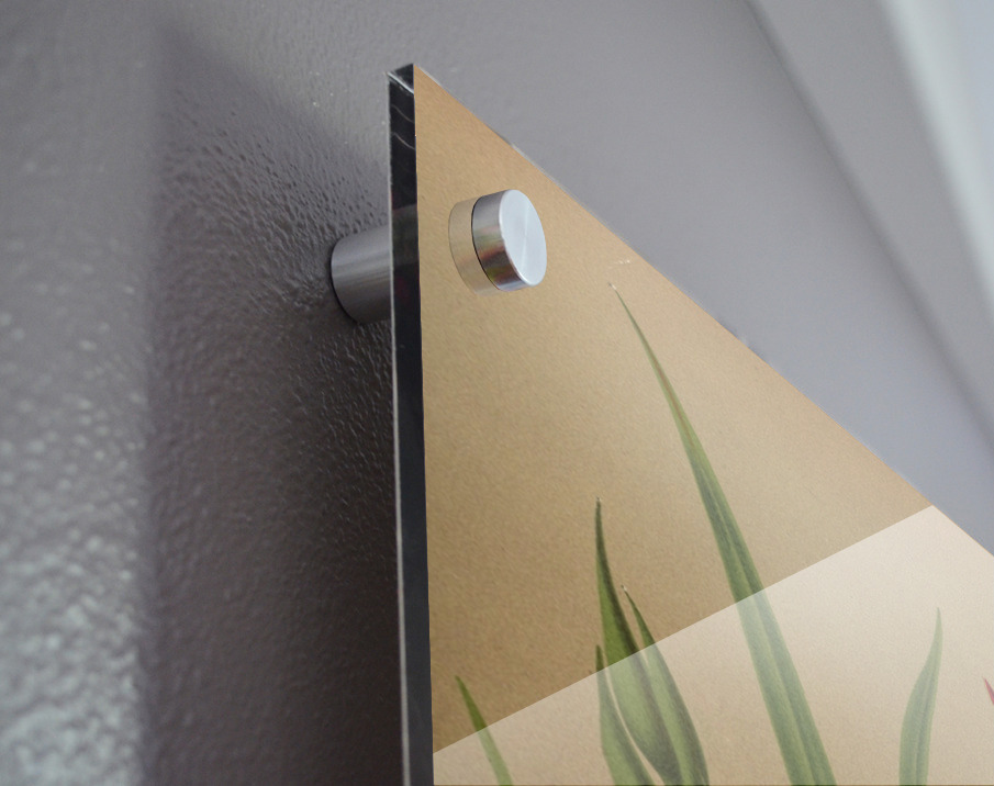 Printed to the edge - Ready to hang - provided with 4 premium polished aluminum stand off ( wall screws and mounting hardware provided ) We suggest a thicker 3/16" acrylic for any size over 42 inches to guarantee a straight acrylic, without curvature