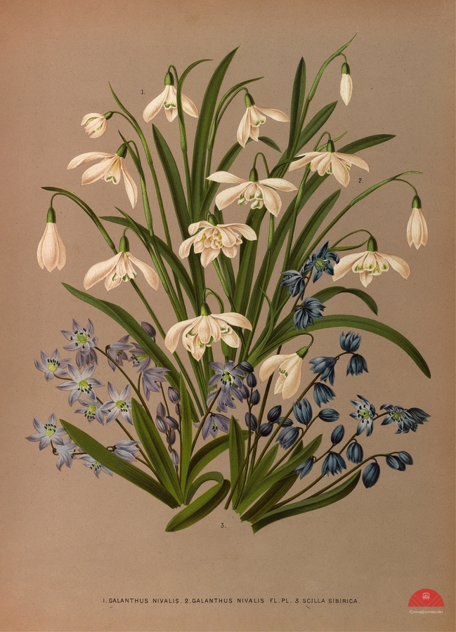 Galanthus Nivalis 2 . Galanthus Nivalis Fl . Pl . 3. Scilla Sibirica 1872-1881 Arentina Hendrica Arendsen Dutch 1836 - 1915