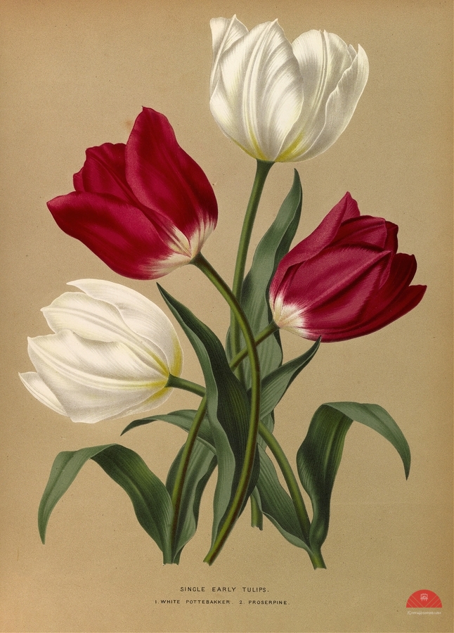 Single Early Tulips 1.White Pottebakker 2.Prosperpine 1872-1881 Arentina Hendrica Arendsen Dutch 1836 - 1915