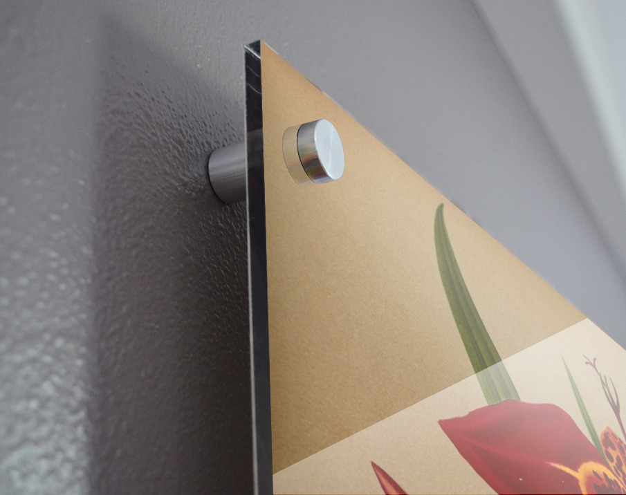 Printed to the edge - Ready to hang - provided with 4 premium polished aluminum stand off ( wall screws and mounting hardware provided ) We suggest a thicker 3/16" acrylic for any size over 42 inches to guarantee a straight acrylic, without curvature