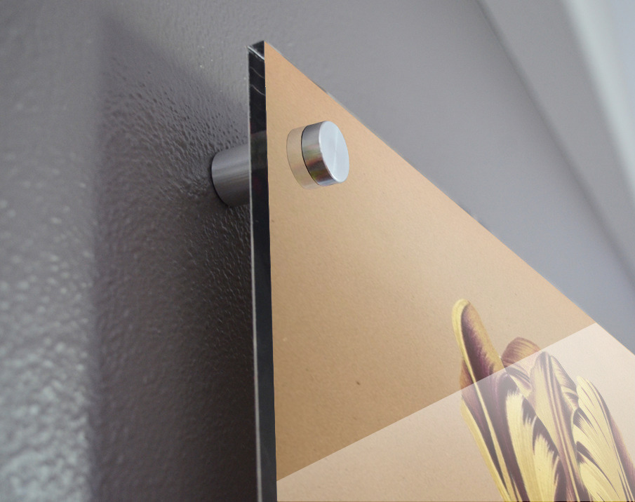 Printed to the edge - Ready to hang - provided with 4 premium polished aluminum stand off ( wall screws and mounting hardware provided ) We suggest a thicker 3/16" acrylic for any size over 42 inches to guarantee a straight acrylic, without curvature