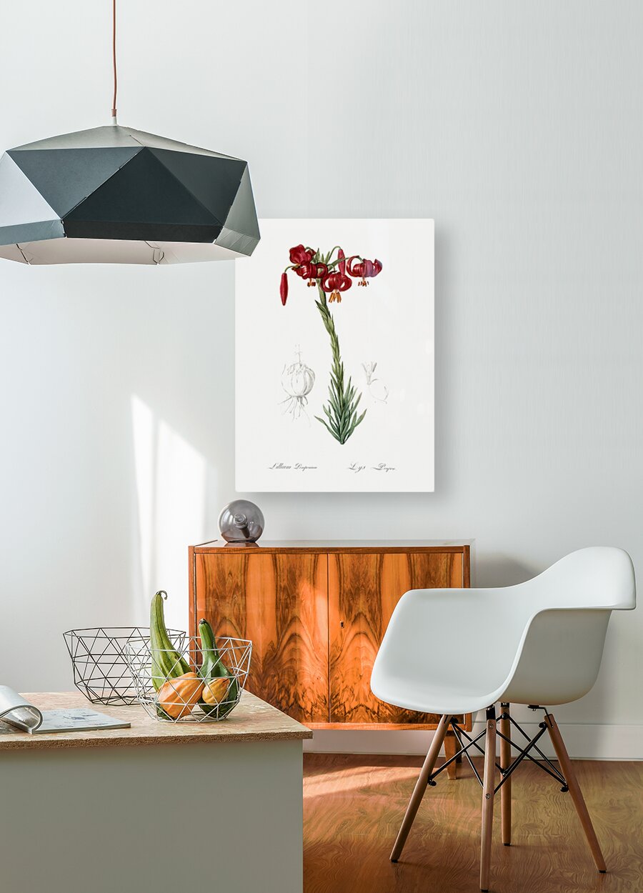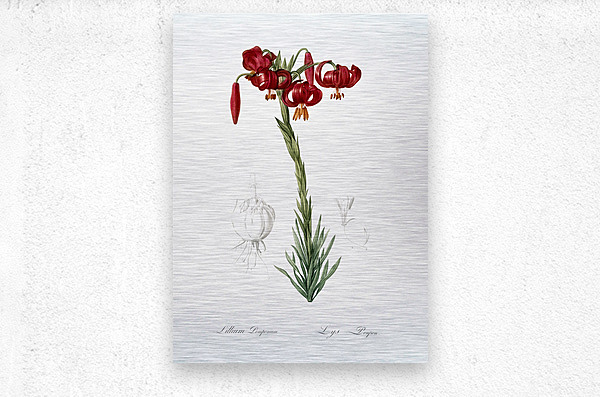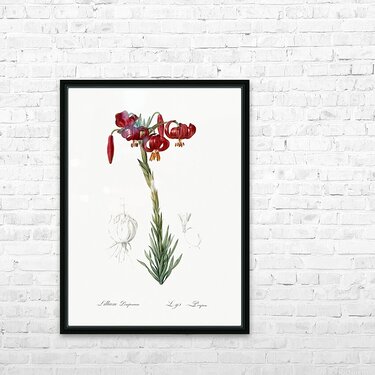 Lillium Pomponium Lily illustration from Les liliacées 1805 by Pierre Joseph Redouté 1759-1840.