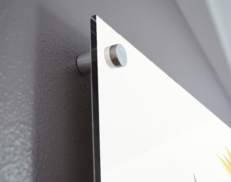 Printed to the edge - Ready to hang - provided with 4 premium polished aluminum stand off ( wall screws and mounting hardware provided ) We suggest a thicker 3/16" acrylic for any size over 42 inches to guarantee a straight acrylic, without curvature