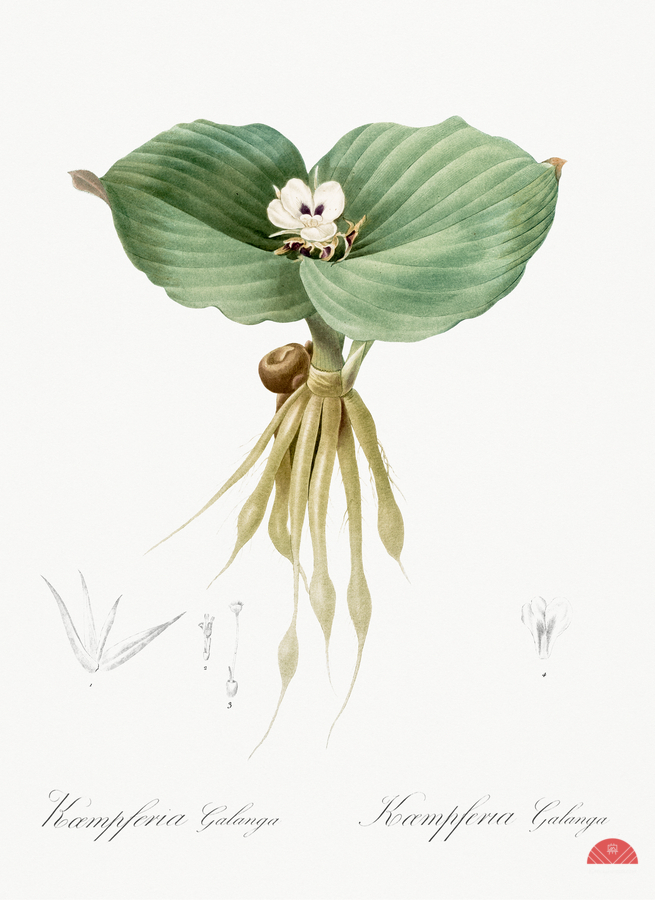 Sand ginger illustration from Les liliacées 1805 by Pierre Joseph Redouté 1759-1840.