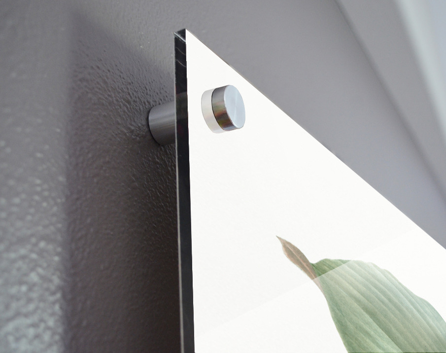 Printed to the edge - Ready to hang - provided with 4 premium polished aluminum stand off ( wall screws and mounting hardware provided ) We suggest a thicker 3/16" acrylic for any size over 42 inches to guarantee a straight acrylic, without curvature