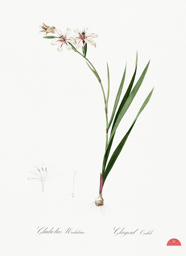 Gladiolus illustration from Les liliacées 1805 by Pierre Joseph Redouté 1759-1840.