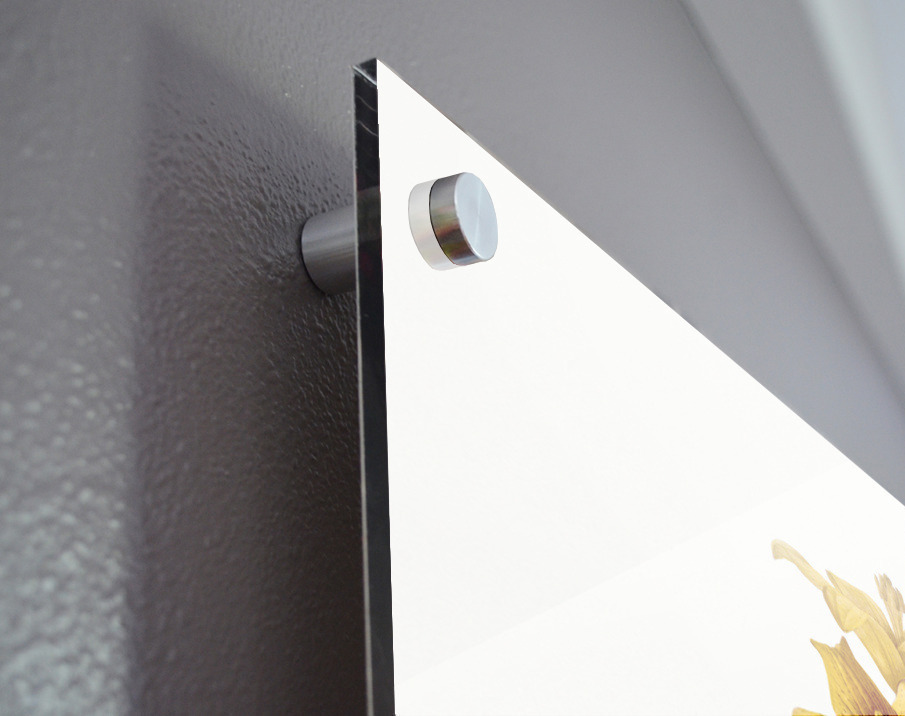 Printed to the edge - Ready to hang - provided with 4 premium polished aluminum stand off ( wall screws and mounting hardware provided ) We suggest a thicker 3/16" acrylic for any size over 42 inches to guarantee a straight acrylic, without curvature