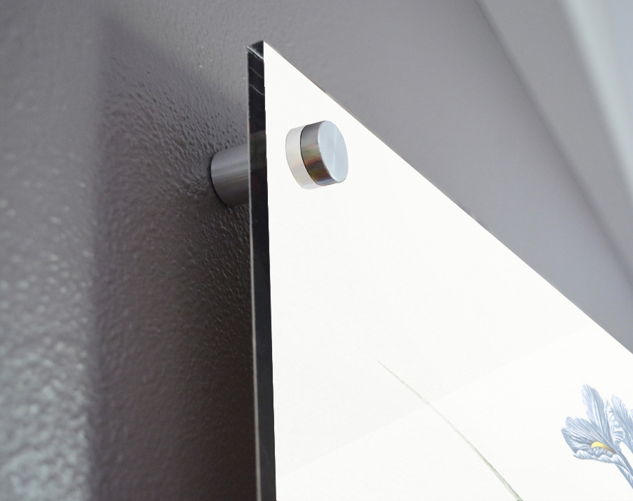 Printed to the edge - Ready to hang - provided with 4 premium polished aluminum stand off ( wall screws and mounting hardware provided ) We suggest a thicker 3/16" acrylic for any size over 42 inches to guarantee a straight acrylic, without curvature