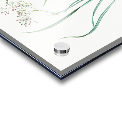Printed to the edge - Ready to hang - provided with 4 premium polished aluminum stand off ( wall screws and mounting hardware provided ) We suggest a thicker 3/16" acrylic for any size over 42 inches to guarantee a straight acrylic, without curvature