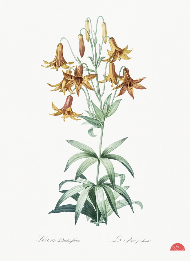 Canada lily illustration from Les liliacées 1805 by Pierre Joseph Redouté 1759-1840.