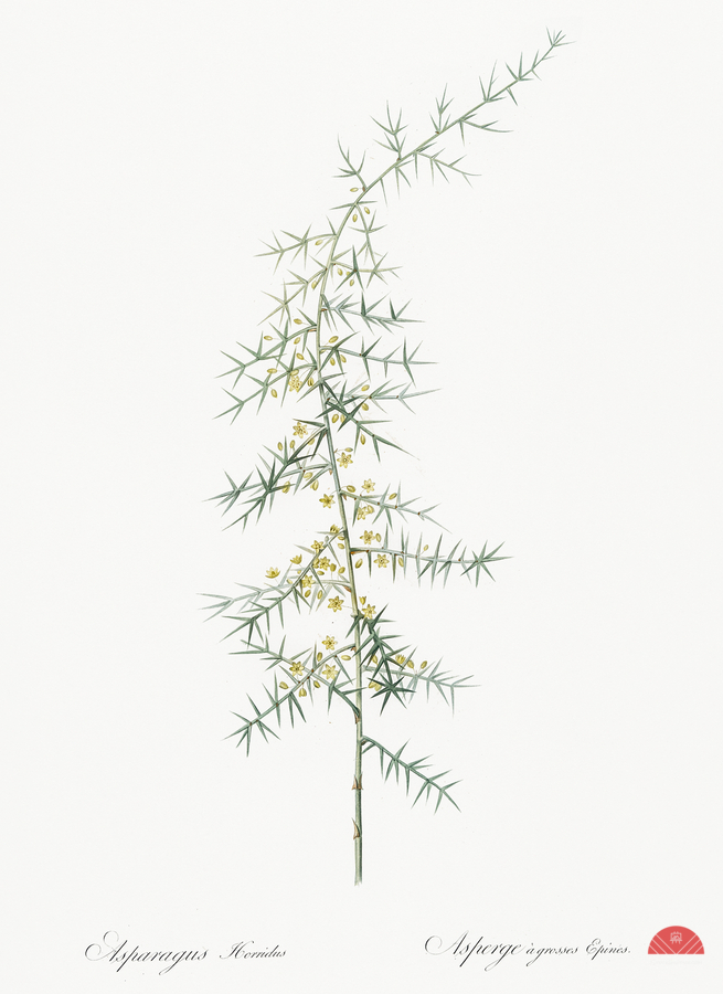Asparagus horridus illustration from Les liliacées 1805 by Pierre Joseph Redouté 1759-1840.