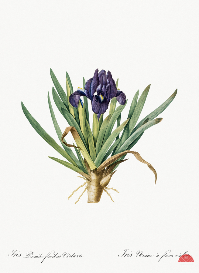 Pygmy iris illustration from Les liliacées 1805 by Pierre Joseph Redouté 1759-1840.