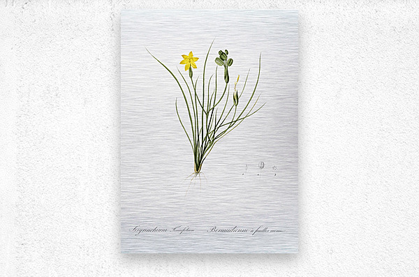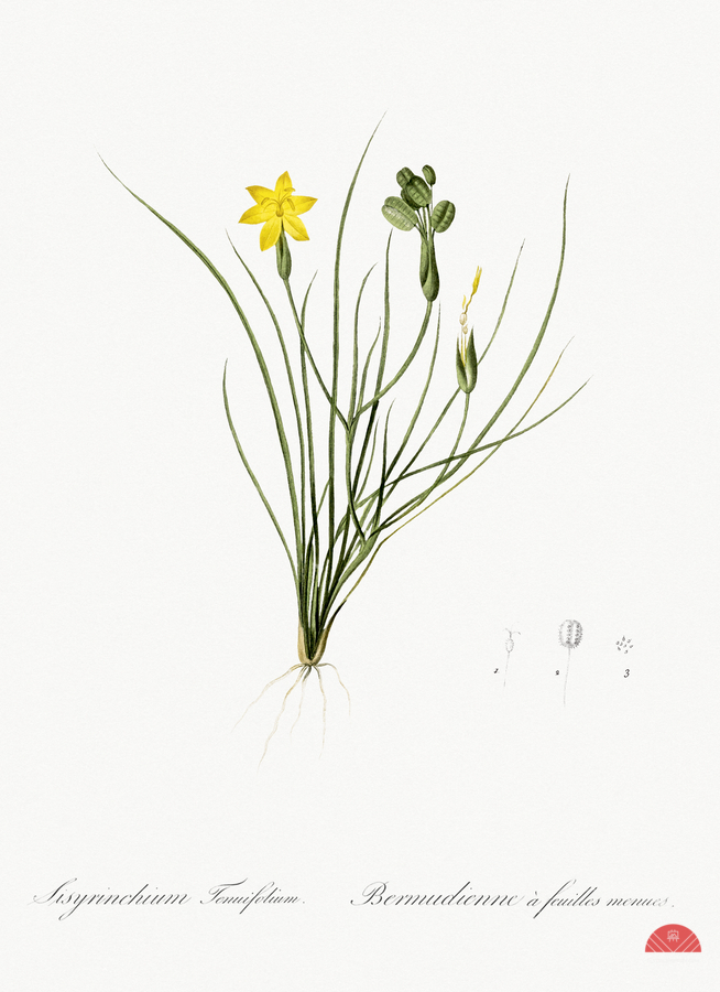Golden blue-eyed grass illustration from Les liliacées 1805 by Pierre Joseph Redouté 1759-1840.