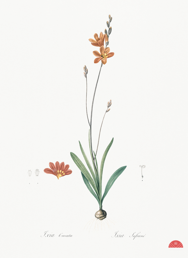 Mossel bay tritonia illustration from Les liliacées 1805 by Pierre Joseph Redouté 1759-1840.