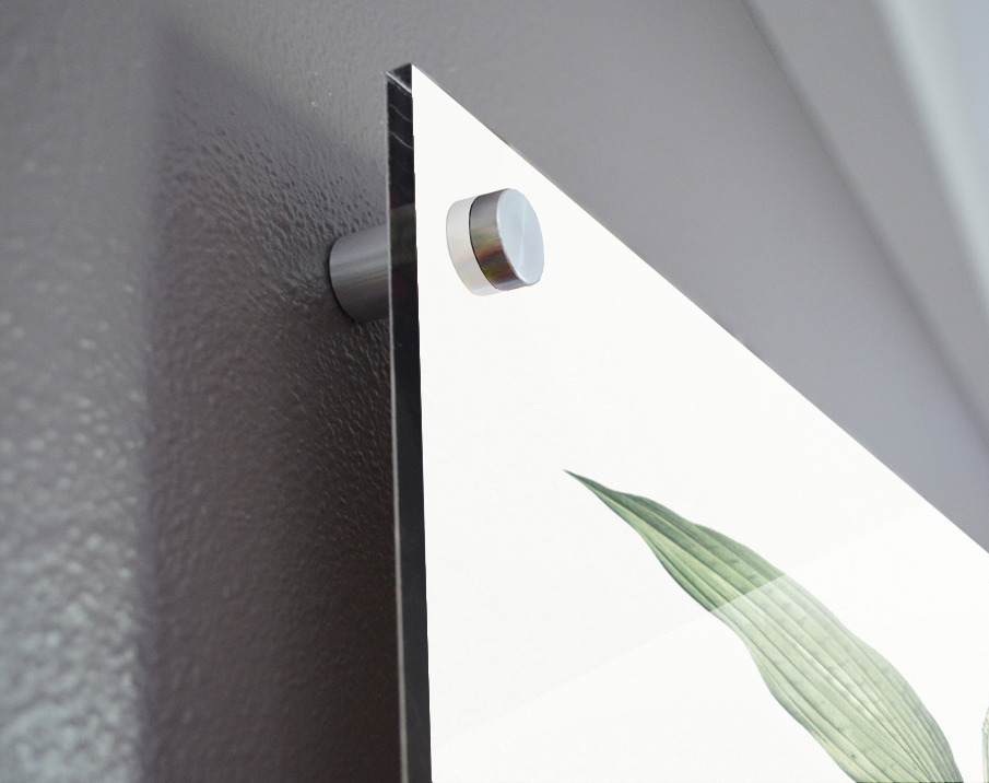Printed to the edge - Ready to hang - provided with 4 premium polished aluminum stand off ( wall screws and mounting hardware provided ) We suggest a thicker 3/16" acrylic for any size over 42 inches to guarantee a straight acrylic, without curvature