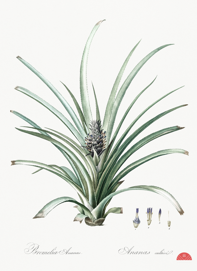Pineapple illustration from Les liliacées 1805 by Pierre Joseph Redouté 1759-1840.