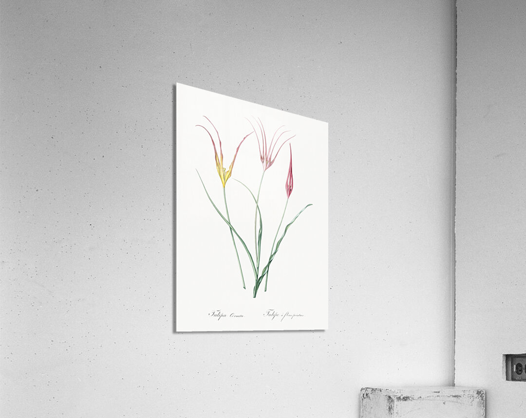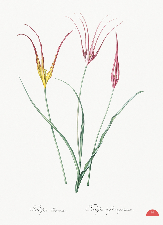 Horned tulip illustration from Les liliacées 1805 by Pierre Joseph Redouté 1759-1840.