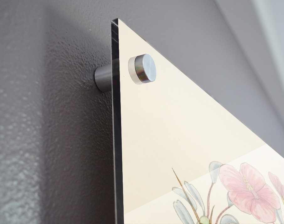 Printed to the edge - Ready to hang - provided with 4 premium polished aluminum stand off ( wall screws and mounting hardware provided )
