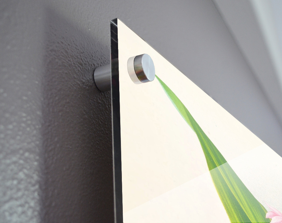 Printed to the edge - Ready to hang - provided with 4 premium polished aluminum stand off ( wall screws and mounting hardware provided ) We suggest a thicker 3/16" acrylic for any size over 42 inches to guarantee a straight acrylic, without curvature