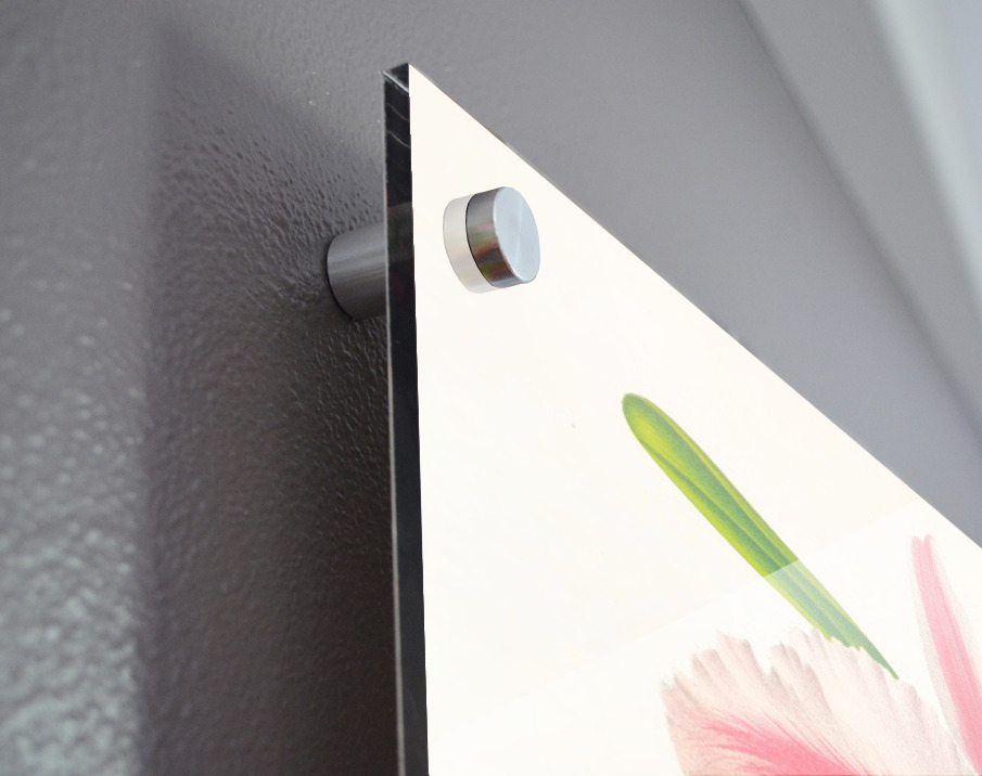 Printed to the edge - Ready to hang - provided with 4 premium polished aluminum stand off ( wall screws and mounting hardware provided ) We suggest a thicker 3/16" acrylic for any size over 42 inches to guarantee a straight acrylic, without curvature