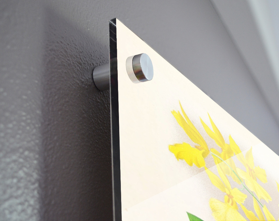 Printed to the edge - Ready to hang - provided with 4 premium polished aluminum stand off ( wall screws and mounting hardware provided ) We suggest a thicker 3/16" acrylic for any size over 42 inches to guarantee a straight acrylic, without curvature