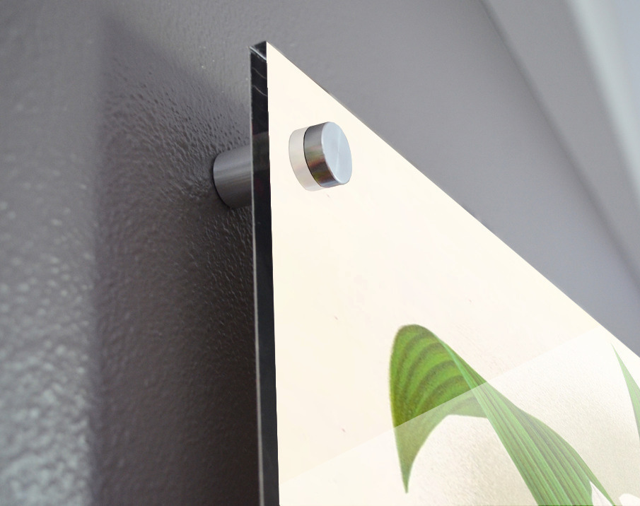 Printed to the edge - Ready to hang - provided with 4 premium polished aluminum stand off ( wall screws and mounting hardware provided ) We suggest a thicker 3/16" acrylic for any size over 42 inches to guarantee a straight acrylic, without curvature