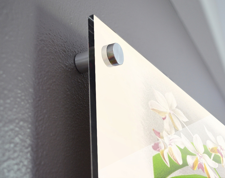 Printed to the edge - Ready to hang - provided with 4 premium polished aluminum stand off ( wall screws and mounting hardware provided ) We suggest a thicker 3/16" acrylic for any size over 42 inches to guarantee a straight acrylic, without curvature