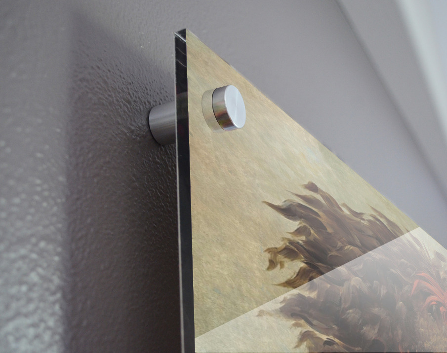 Printed to the edge - Ready to hang - provided with 4 premium polished aluminum stand off ( wall screws and mounting hardware provided )