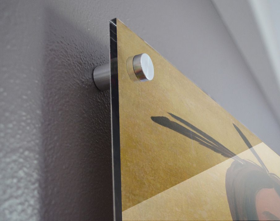 Printed to the edge - Ready to hang - provided with 4 premium polished aluminum stand off ( wall screws and mounting hardware provided )