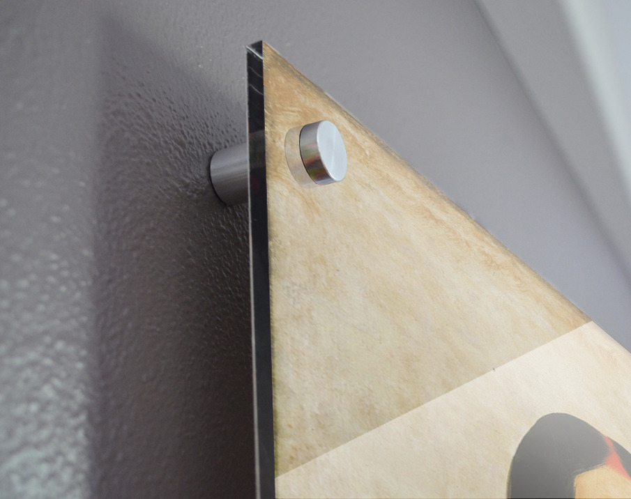 Printed to the edge - Ready to hang - provided with 4 premium polished aluminum stand off ( wall screws and mounting hardware provided ) We suggest a thicker 3/16" acrylic for any size over 42 inches to guarantee a straight acrylic, without curvature