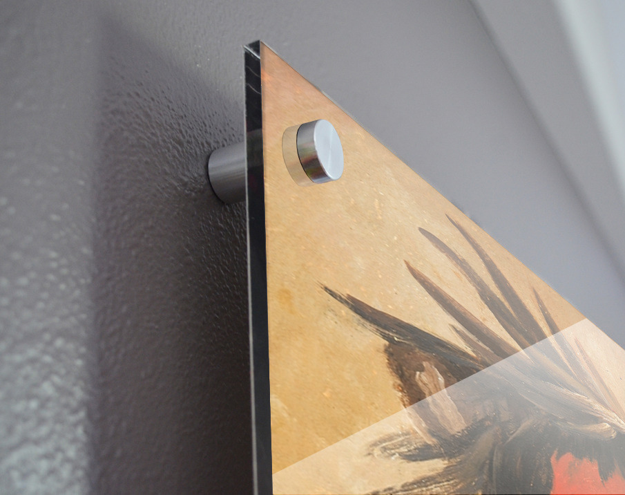 Printed to the edge - Ready to hang - provided with 4 premium polished aluminum stand off ( wall screws and mounting hardware provided ) We suggest a thicker 3/16" acrylic for any size over 42 inches to guarantee a straight acrylic, without curvature