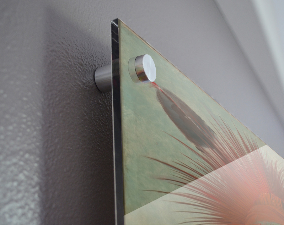 Printed to the edge - Ready to hang - provided with 4 premium polished aluminum stand off ( wall screws and mounting hardware provided ) We suggest a thicker 3/16" acrylic for any size over 42 inches to guarantee a straight acrylic, without curvature