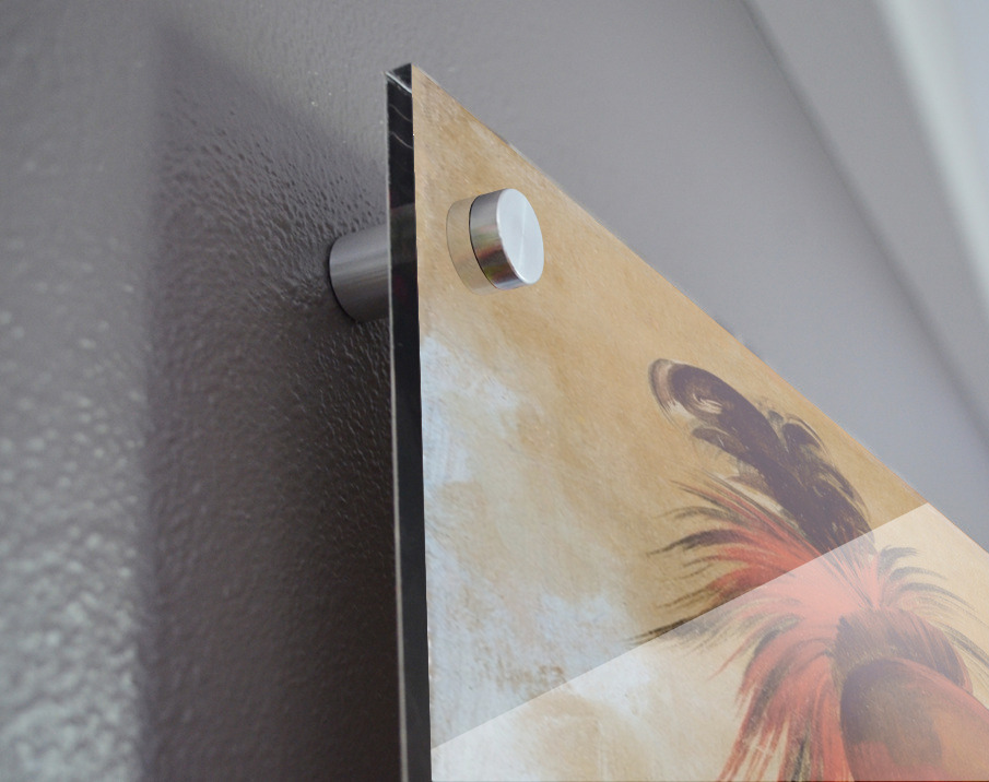 Printed to the edge - Ready to hang - provided with 4 premium polished aluminum stand off ( wall screws and mounting hardware provided )