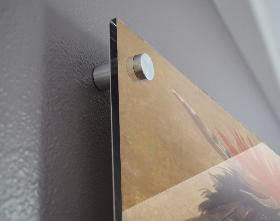 Printed to the edge - Ready to hang - provided with 4 premium polished aluminum stand off ( wall screws and mounting hardware provided ) We suggest a thicker 3/16" acrylic for any size over 42 inches to guarantee a straight acrylic, without curvature