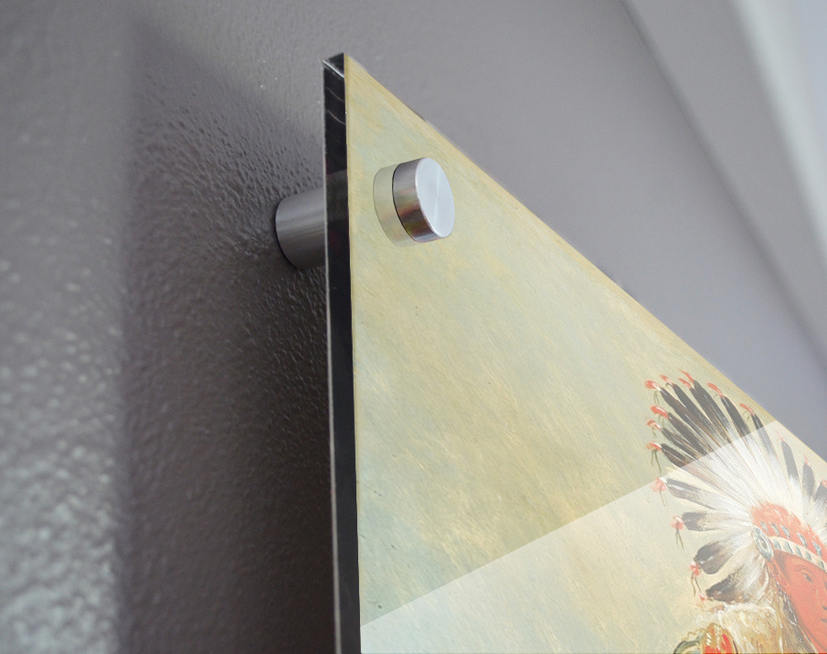 Printed to the edge - Ready to hang - provided with 4 premium polished aluminum stand off ( wall screws and mounting hardware provided ) We suggest a thicker 3/16" acrylic for any size over 42 inches to guarantee a straight acrylic, without curvature