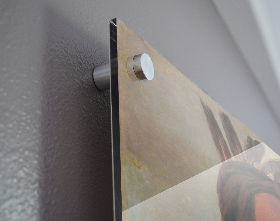 Printed to the edge - Ready to hang - provided with 4 premium polished aluminum stand off ( wall screws and mounting hardware provided ) We suggest a thicker 3/16" acrylic for any size over 42 inches to guarantee a straight acrylic, without curvature