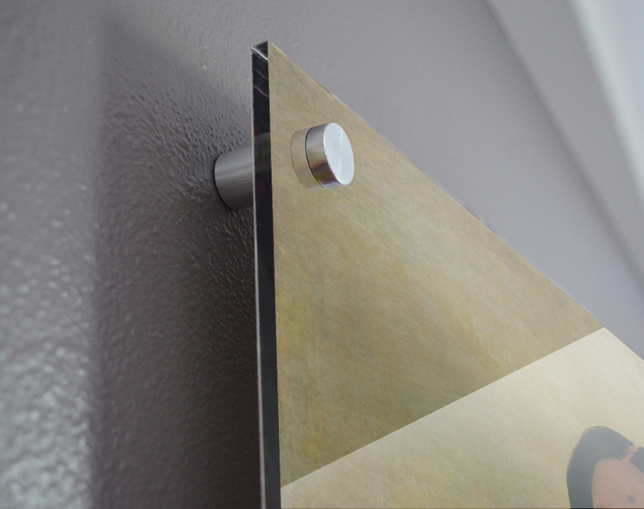 Printed to the edge - Ready to hang - provided with 4 premium polished aluminum stand off ( wall screws and mounting hardware provided ) We suggest a thicker 3/16" acrylic for any size over 42 inches to guarantee a straight acrylic, without curvature