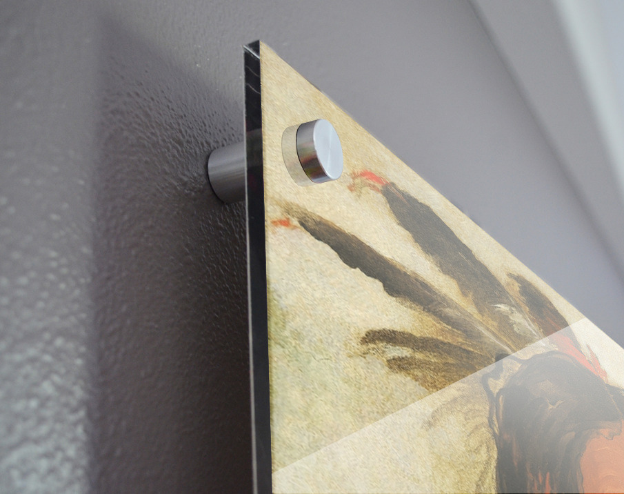 Printed to the edge - Ready to hang - provided with 4 premium polished aluminum stand off ( wall screws and mounting hardware provided ) We suggest a thicker 3/16" acrylic for any size over 42 inches to guarantee a straight acrylic, without curvature