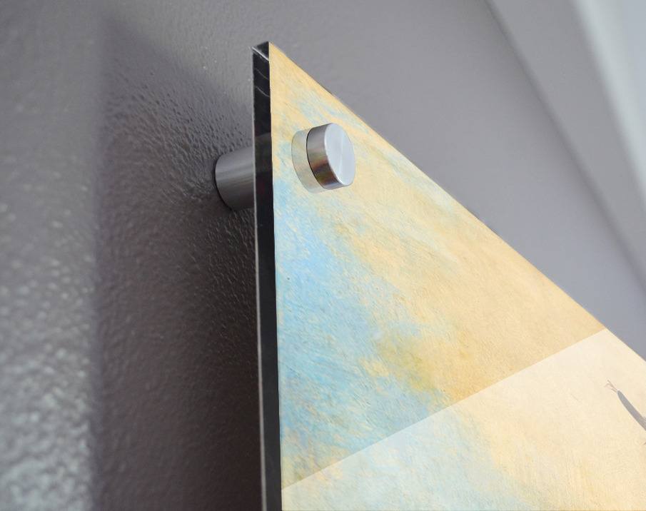 Printed to the edge - Ready to hang - provided with 4 premium polished aluminum stand off ( wall screws and mounting hardware provided )