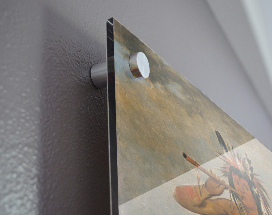 Printed to the edge - Ready to hang - provided with 4 premium polished aluminum stand off ( wall screws and mounting hardware provided ) We suggest a thicker 3/16" acrylic for any size over 42 inches to guarantee a straight acrylic, without curvature