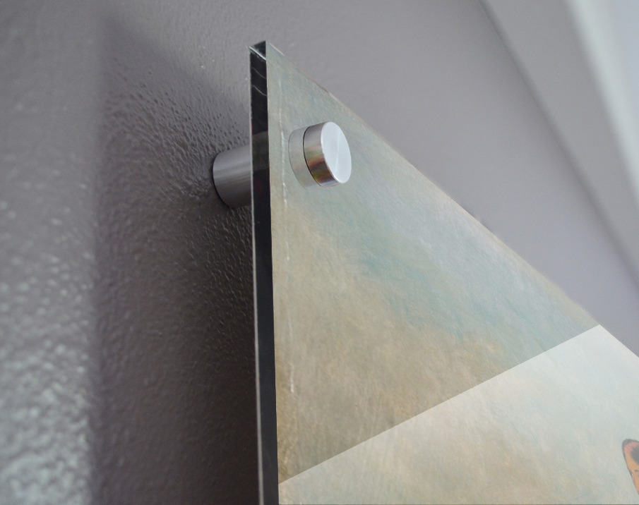 Printed to the edge - Ready to hang - provided with 4 premium polished aluminum stand off ( wall screws and mounting hardware provided ) We suggest a thicker 3/16" acrylic for any size over 42 inches to guarantee a straight acrylic, without curvature