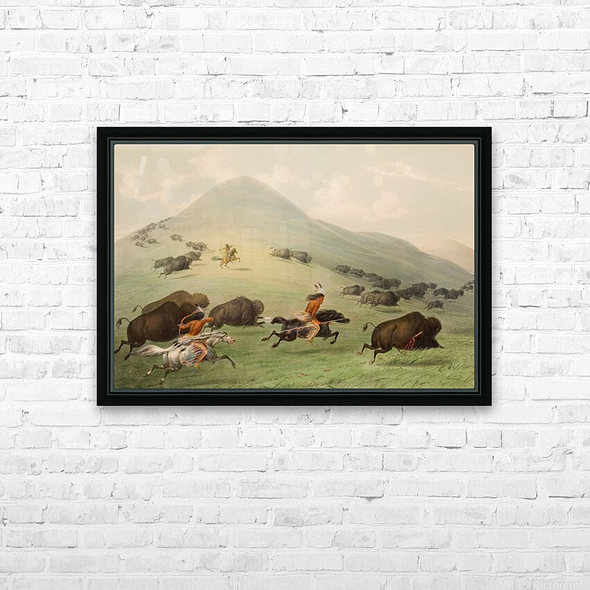 Buffalo Hunt Horseback 1844  HD Metal print with Floating Frame on Back