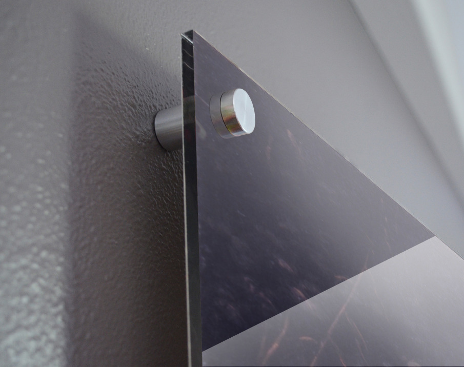 Printed to the edge - Ready to hang - provided with 4 premium polished aluminum stand off ( wall screws and mounting hardware provided ) We suggest a thicker 3/16" acrylic for any size over 42 inches to guarantee a straight acrylic, without curvature