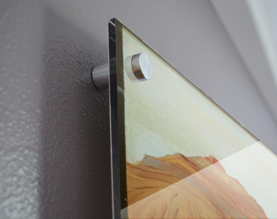 Printed to the edge - Ready to hang - provided with 4 premium polished aluminum stand off ( wall screws and mounting hardware provided )