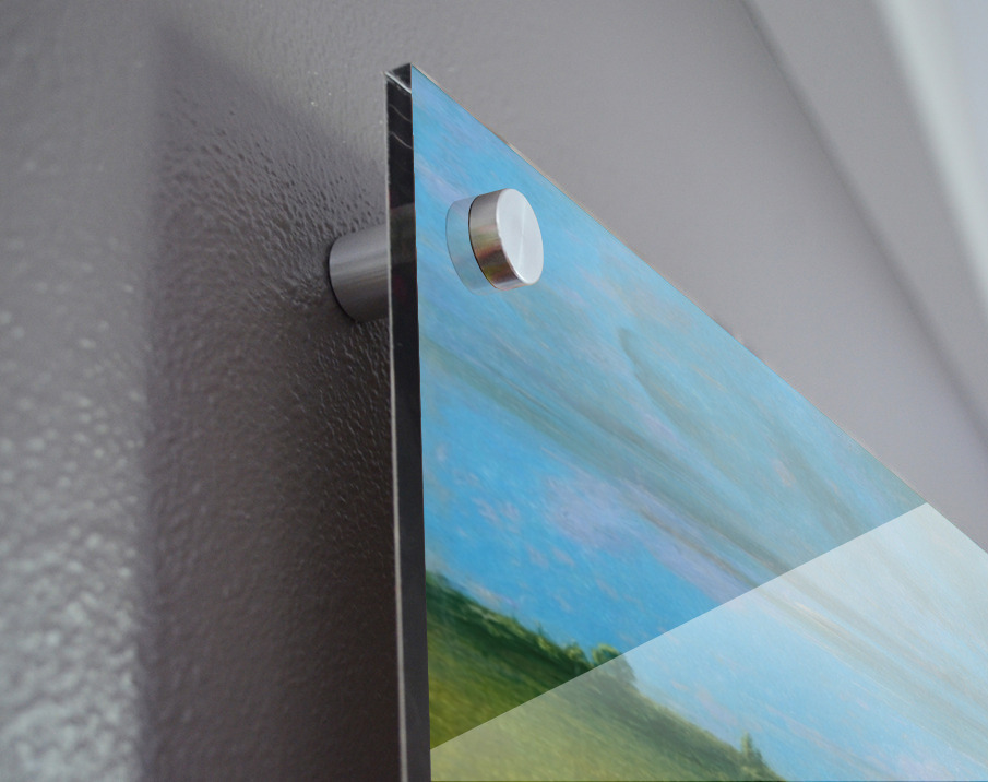 Printed to the edge - Ready to hang - provided with 4 premium polished aluminum stand off ( wall screws and mounting hardware provided ) We suggest a thicker 3/16" acrylic for any size over 42 inches to guarantee a straight acrylic, without curvature