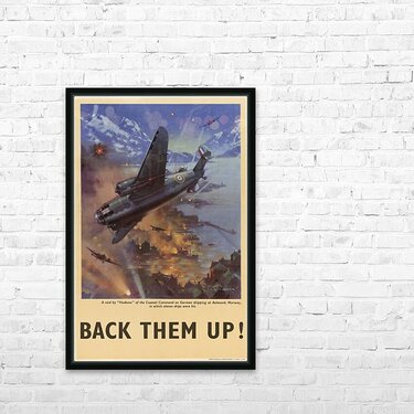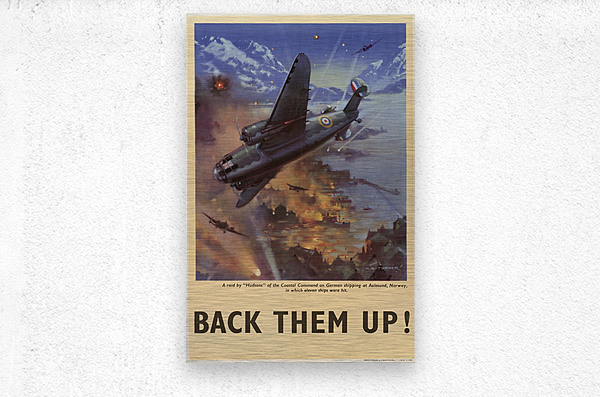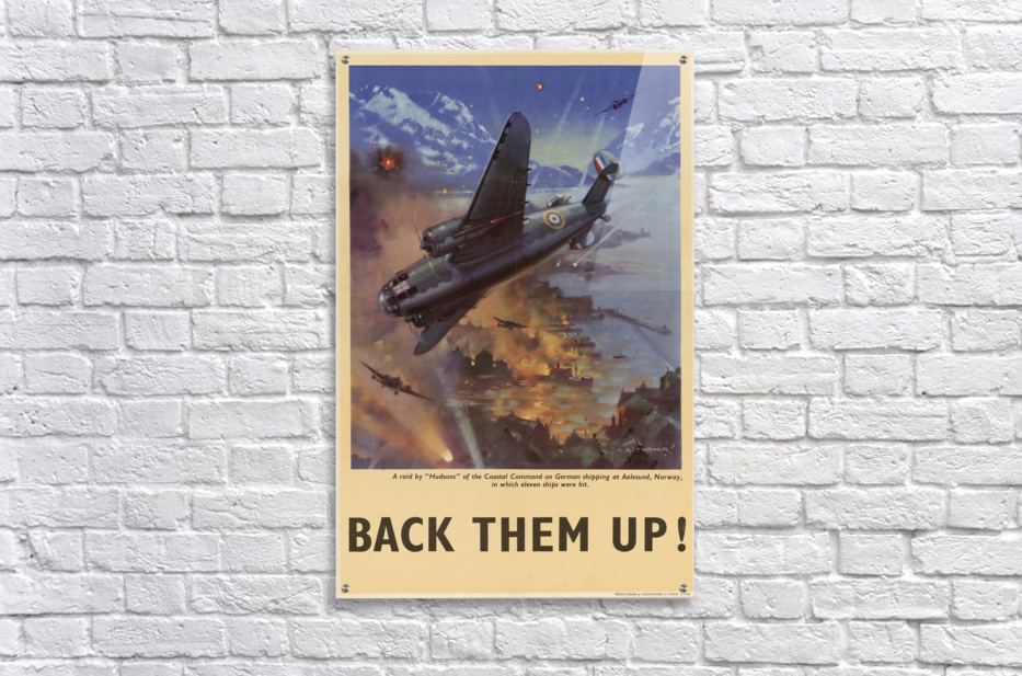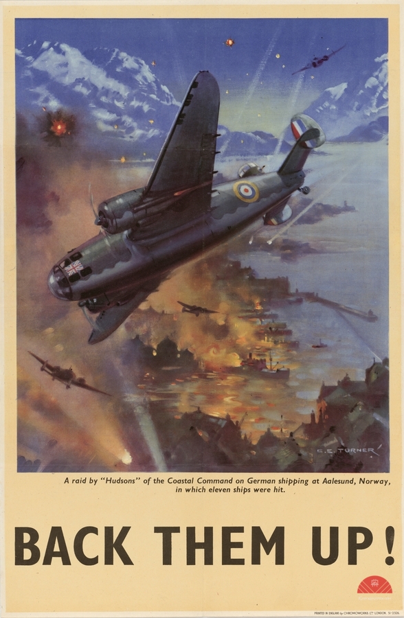 A Raid by ‘Hudsons’ of the Coastal Command on German Shipping at Aalesund Norway in which Eleven Ships were Hit – Back Them Up! Charles E Turner English 1883-1965